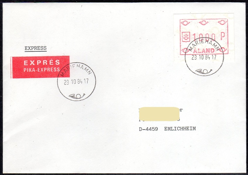ATM 1000 als Einzelfrankatur auf EXPRESS FDC nach Deutschland,