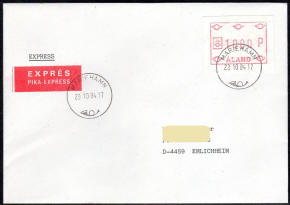 ATM 290 auf Ausland Luftpost Brief vom Ersttag 5.4.95 Mariehamn |