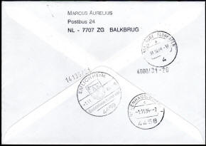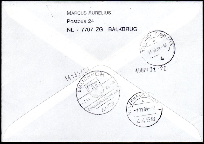 ATM 20 auf unterfrankiertem Auslandsbrief vom Ersttag 29.10.84 nach
