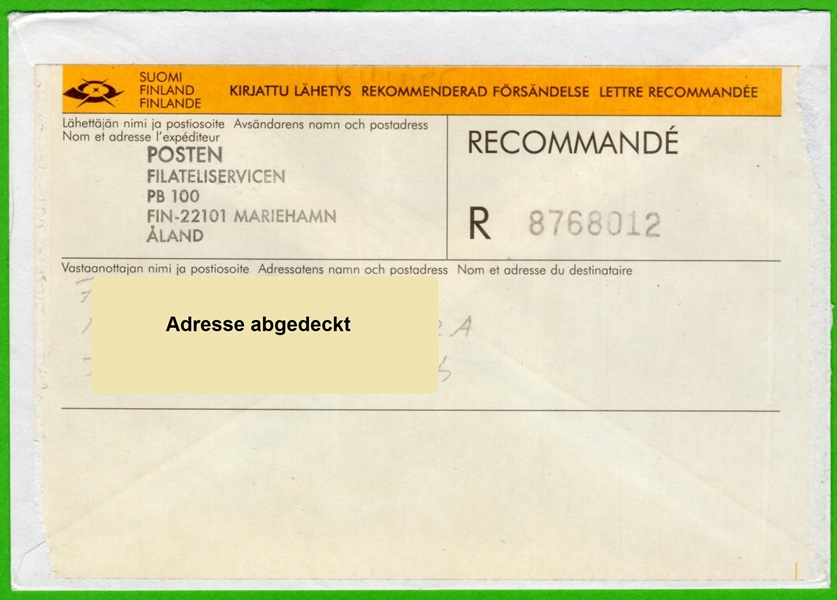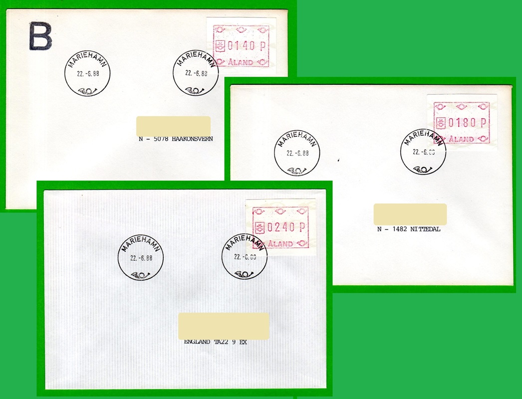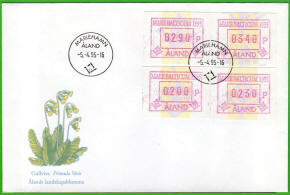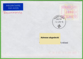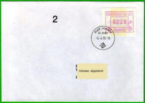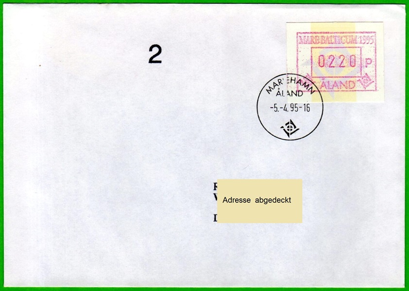 ATM 220 auf Ausland B-Post Brief vom Ersttag 5.4.95 Mariehamn |