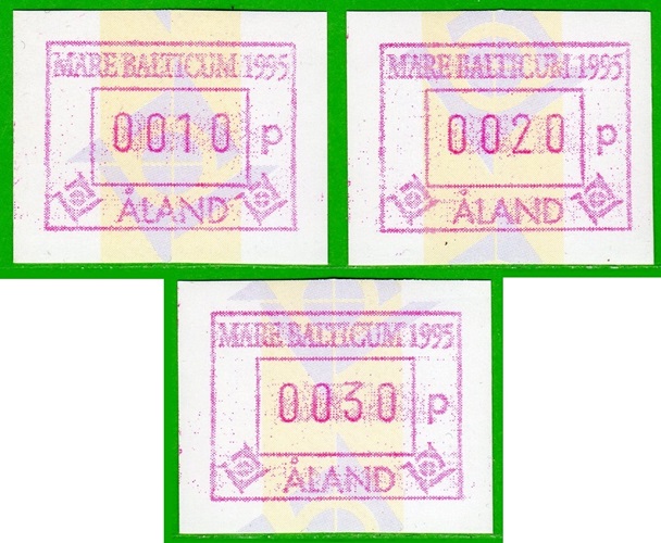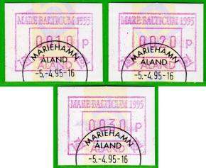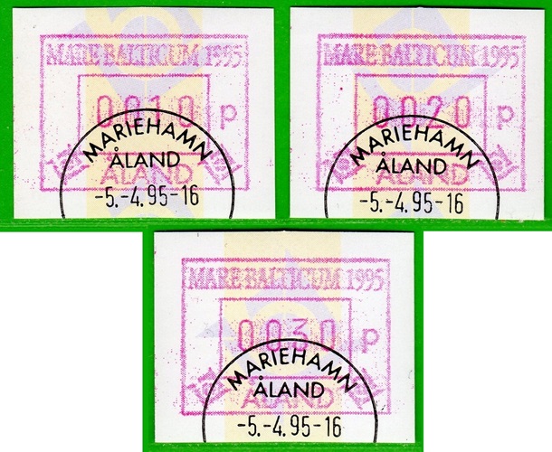 Serie Kleinwerte 10 - 20 - 30 Ersttagsstempel 5.4.95 Mariehamn |