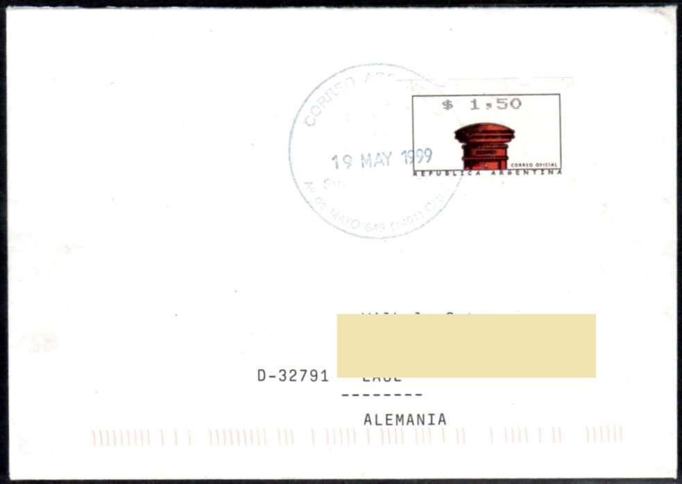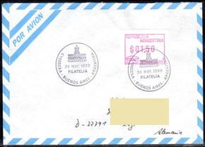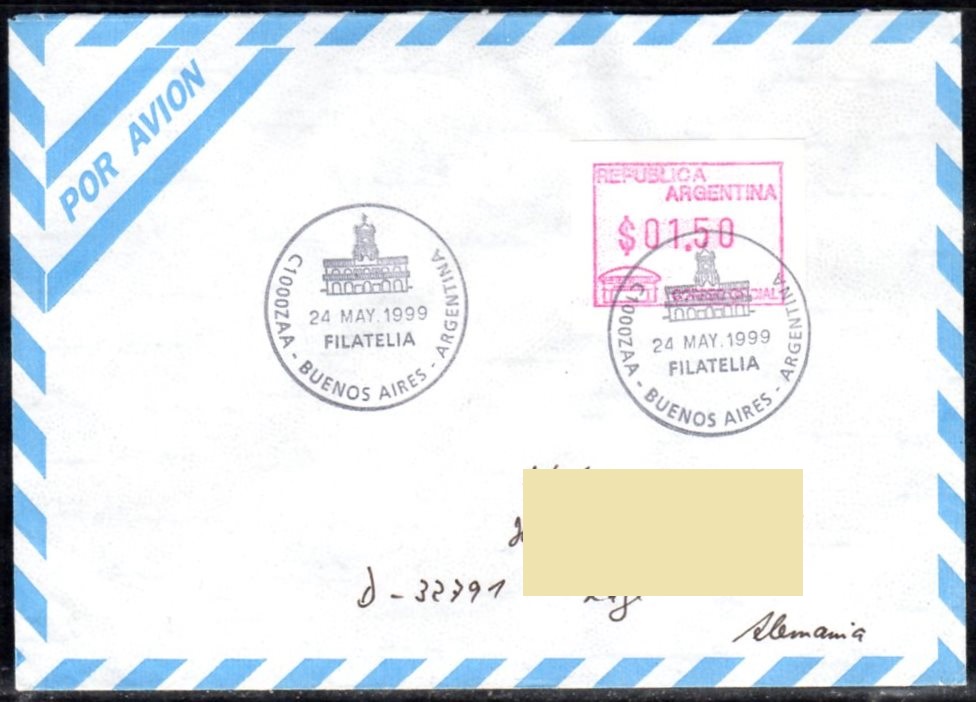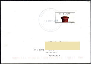 ATM 01,50 auf Luftpostbrief nach Deutschland - Filatelia 24 May 1999 |