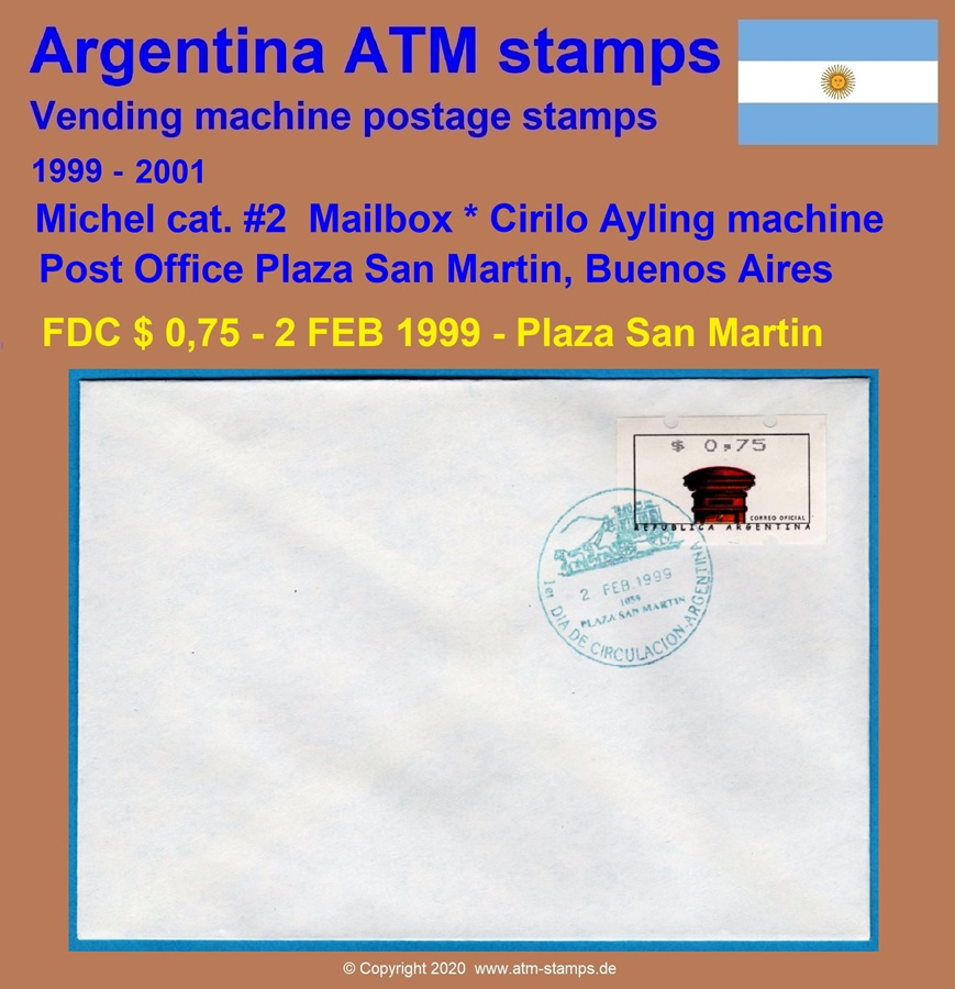 ATM 00,75 auf Blanko FDC - Ersttag Sonderstempel Plaza San Martin - 2.