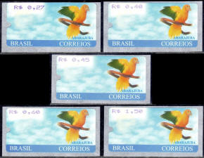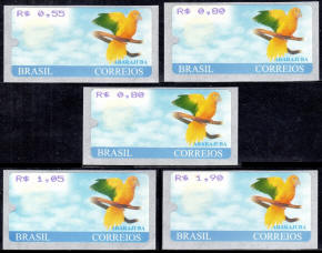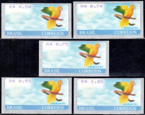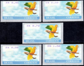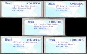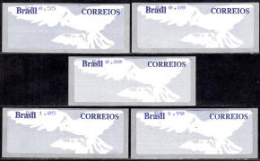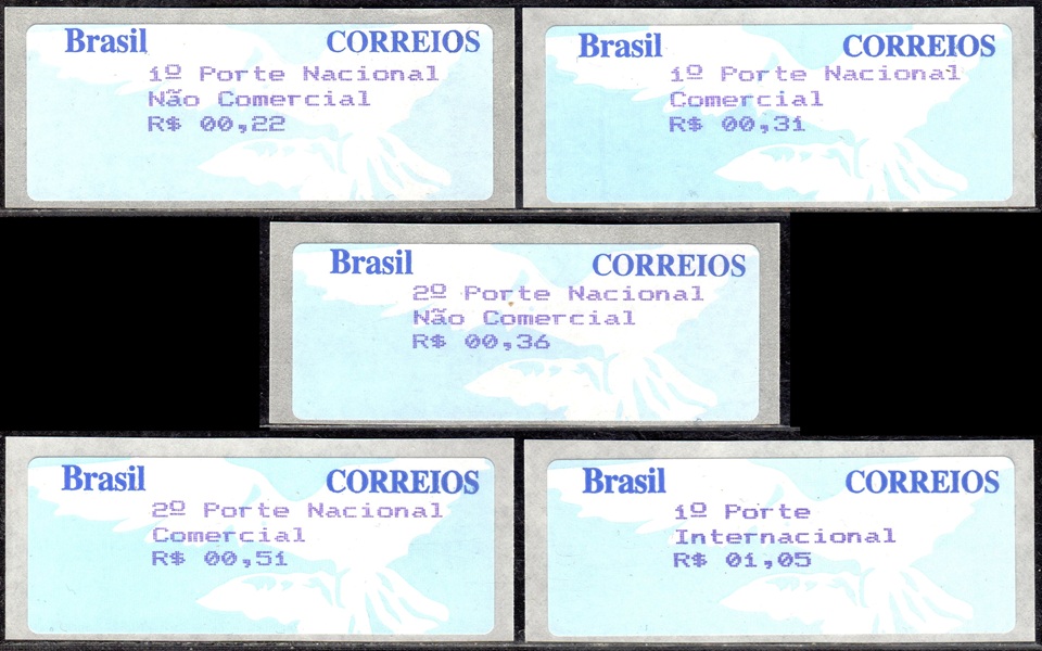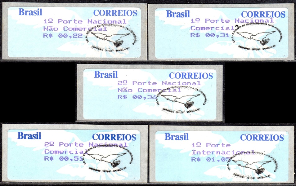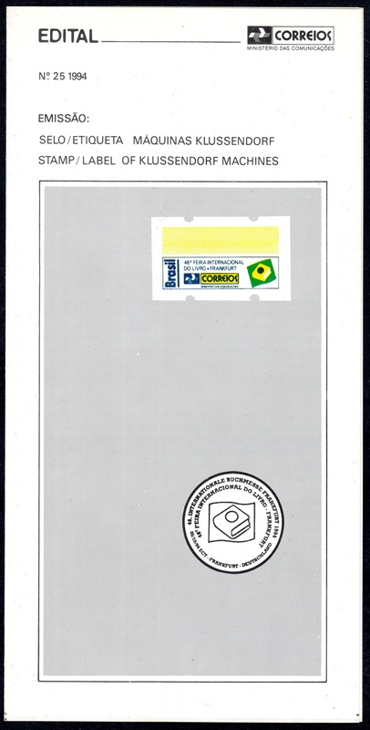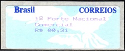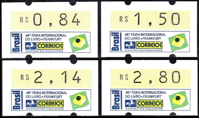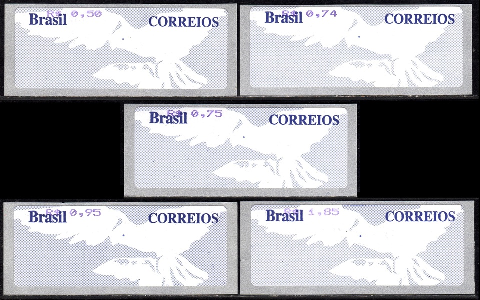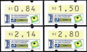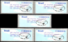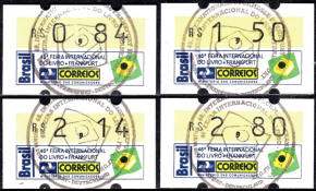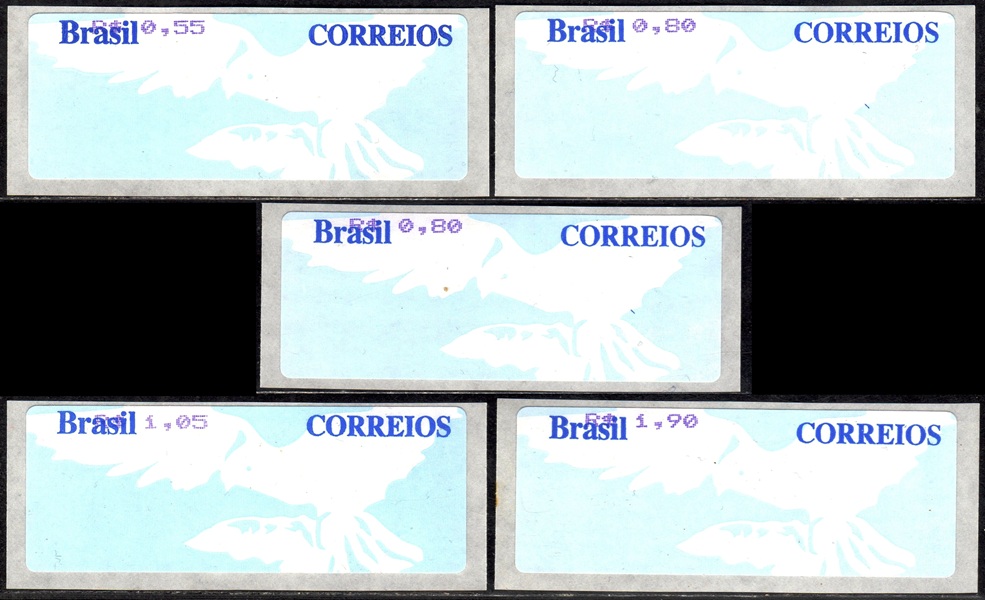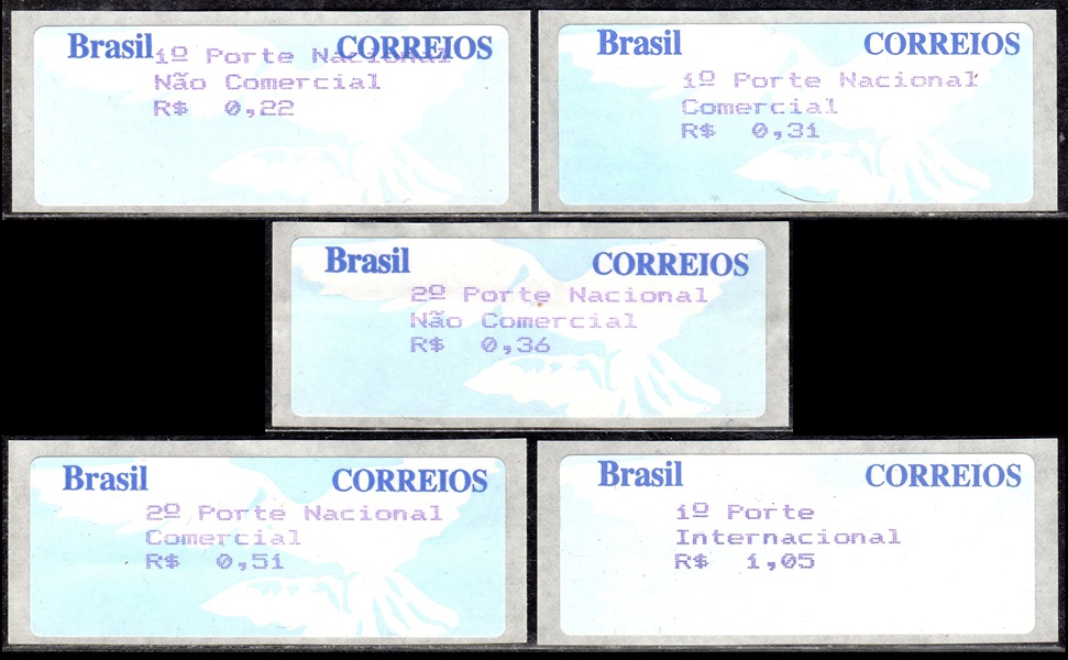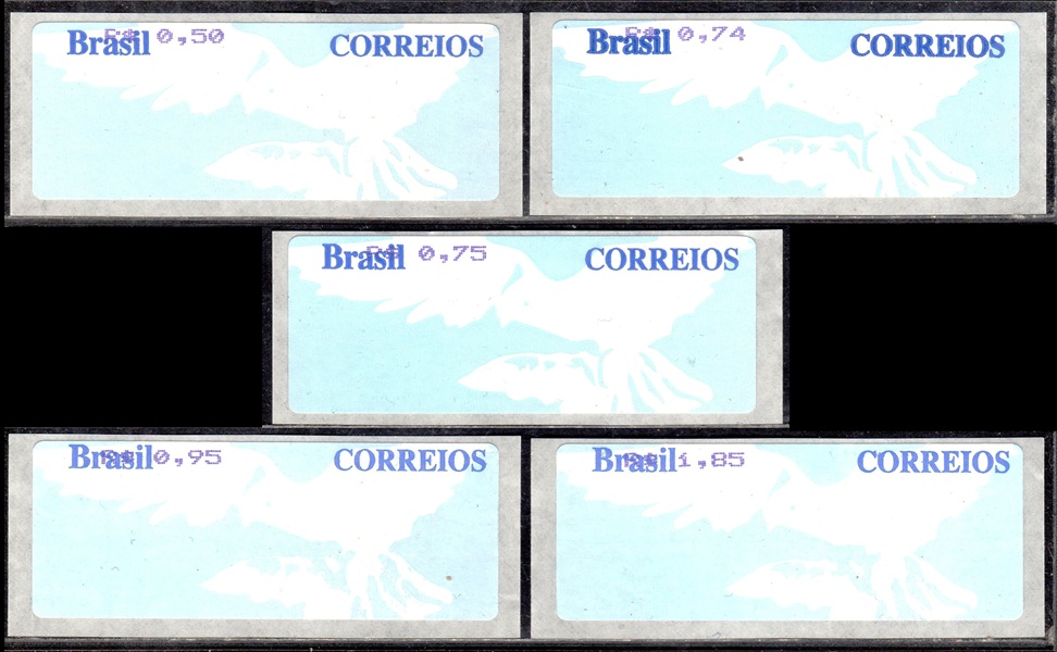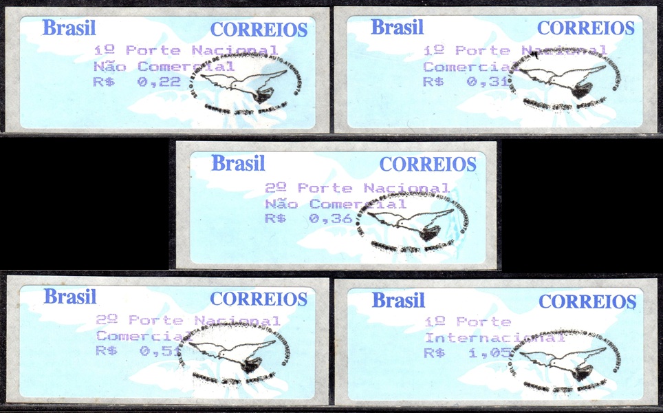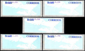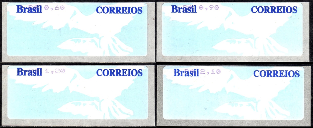 Die Postverwaltung von Brasilien nahm am 10.06.1981 insgesamt 10 Schalterwertzeichendrucker mit Automatennummern AG.00001 - AG.00010 der schweizer Firma Frama vom Typ SG15 in Brasilia, Rio de Janeira und São Paulo in Betrieb. Die Postverwaltung erklärte diese Postwertzeichen trotz aufgedrucktem Datum zu uneingeschränkt gültigen Briefmarken. Im amtlichen Erlass vom 10.6.1981 wird speziell darauf hingewiesen, dass die Marken jederzeit und überall in Brasilien verwendet werden durften und abgestempelt werden mussten. Das aufgedruckte Datum blieb unberücksichtigt. Die Marken waren dem Kunden abzugeben, damit er diese benutzen konnte, wann und wo er wollte. Die Geräte hatten grundsätzlich ein Wertespektrum von 0,01 - 99,99 (Cr$) in Stufen von 0,01 (Cr$) wobei die Postverwaltung den Mindestabgabe-Nennwert auf 7,00 (Cr$) festgelegt hatte. Bei der Versandstelle der Post waren die ATM nur in den Wertstufen 7,00 (Cr$) und 12,00 (Cr$) erhältlich, amtliche Ersttagsbelege / FDC wurden nicht angeboten. Die in den Geräten eingesetzten weißen Papierrollen (Papier rau / dunkle Fluoreszenz) wurden wahrscheinlich auch von der Firma Frama geliefert. Bei dieser Ausgabe gibt es sehr starke Farbband-Tönungen. Die dunkelrotlila Tönung ist bei ATM aus den Ortsgeräten typisch. Alle Marken mit Druckdatum 11.6.1981 – 28.12.1981 stammen von den Ortsautomaten und alle Werte außer 7,00 und 12,00 Cr$ stammen ebenfalls aus Ortsautomaten, da die Versandstelle nur die Wertstufen 7,00 und 12,00 Cr$ und immer mit dem Druckdatum 10.6.1981 (Ersttag) ausgeliefert hat. Das Porto für einen Inlandbrief betrug 7,00 Cr$ vom Ersttag 10.06.1981 – 17.07.1981, dann 12,00 Cr$ vom 18.7.1981 – 28.2.1982. Briefe mit ATM der Versandstelle sind oft nicht portogerecht frankiert. Die ATM der Versandstelle im Farbton Rotorange (in der Farbgruppe bräunlichrot) sind alle erst 1982 nach dem Versuchsende entstanden. Alle Briefe sind erst 1982 abgestempelt, teilweise nicht portogerecht frankiert, da am 1.3.1982 eine weitere Portoerhöhung in Kraft trat. Der Betriebsversuch wurde schon nach rund 6 Monaten Ende 1981 wegen der hohen Inflation, technischen Problemen und mangelnder Akzeptanz der Geräte beim Postpublikum eingestellt. Die Ausgabe wurde von den brasilianischen und europäischen Händlern seinerzeit fast ausschließlich über die Versandstelle bezogen. Diese Versandstellenmarken, die nur in den Wertstufen 7,00 Cr$ und 12,00 Cr$ und immer mit Ersttag-Druckdatum 10.6.1981 ausgeliefert wurden, machen den Großteil des verfügbaren Markenmaterials aus. Marken in anderen Wertstufen und mit späteren Druckdaten stammen grundsätzlich aus den kaum beachteten Ortsgeräten und sind sehr selten, wobei ATM und Briefe der Standorte in Brasilia und Sāo Paulo noch wesentlich seltener sind als die von Rio de Janeiro. |