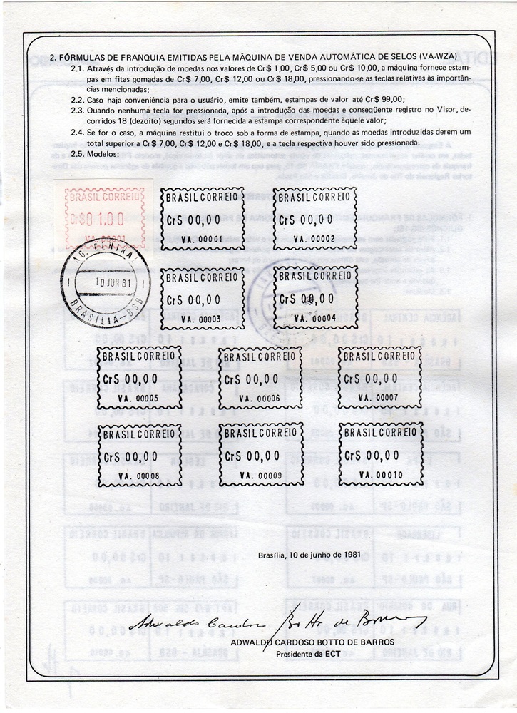 3.2 | VA. 00002 | Brasilia Postamt Senado | 10.06.1981 | 28.12.1981 | 3.7 | VA. 00007 | São Paulo Postamt Ibirapuera | 10.06.1981 | 28.12.1981 | ||