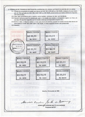 3.3 | VA. 00003 | Rio de Janeiro Hauptpostamt Agência Central | 10.06.1981 | 28.12.1981 | 3.8 | VA. 00008 | São Paulo Postamt Metro São Bento | 10.06.1981 | 28.12.1981 | ||