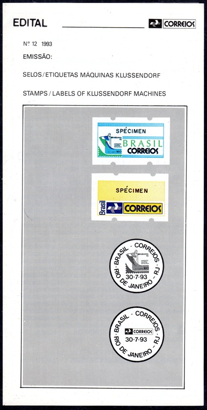 Sonderausgabe zur BRASILIANA `93 angekündigt. Der Ersttag wurde auf den