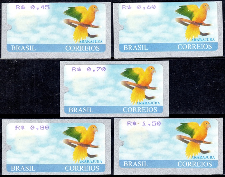 ATM Ausgabe MiNr.8 ARARAJUBA. Unter UV-Licht ist links eine gelbe Kugel