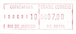 2.4 | AG. 00004 | Rio de Janeiro Postamt Copacabana | 10.06.1981 | 28.12.1981 | 2.9 | AG. 00009 | Rio de Janeiro Postamt Rua do Rosario | 10.06.1981 | 28.12.1981 | ||