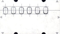 Druckproben bzw. Maschinenproben gibt es auf weißem Testpapier sowie auf Testpapier mit vorgedruckter Rasterung und Justierpfeilen, beide Papiere mit Gummierung. Weltweit einmalig für Klüssendorf Automaten ist der Aufdruck mit einem Druckwerk das sechs Ziffernräder hat. |