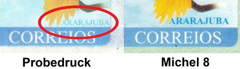 Markenvordruck Michel 8. Zum einen ist das Schriftbild „ARARAJUBA“