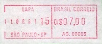 Die brasilianische Post (Empresa Brasileira de Correios e Telégrafos) hat am 15.09.1979 die erste Automatenmarke herausgegeben. Diese Ausgabe war weltweit auch die erste Automatenmarken Sonderausgabe. Der Anlass war der 18. UPU Weltpostkongress in Rio de Janeiro. Da der Automat der schweizer Firma Frama Typ FE254 bei der Einfuhr aus der Schweiz vom Zoll nicht rechtzeitig freigegeben wurde, konnte er nicht wie geplant an der Ausstellung für technische Neuheiten anlässlich des Weltpostkongresses (12.9.1979 – 26.10.1979) aufgestellt werden. Er wurde daher an der parallel stattfindenden Briefmarkenausstellung BRASILIANA 1979 in Betrieb genommen. Die Ausstellung fand vom 15.9.1979 – 23.9.1979 im Hotel Nacional in São Conrado bei Rio de Janeiro statt. Es gibt nur wenige portogerechte und nachweislich echt gelaufene Briefe dieser Ausgabe, da exakt am Ersttag eine Portoerhöhung in Kraft trat. Daher sind auch viele FDC und Briefe unterfrankiert. Dann am 10.06.1981 nahm die Postverwaltung sowohl 10 Schalterwertzeichendrucker mit Automatennummern AG.00001 - AG.00010 als auch 10 Münzwertzeichendrucker mit Automatennummern VA.00001 - VA.00010 der schweizer Firma in Brasilia, Rio de Janeira und São Paulo in Betrieb. Der Betriebsversuch wurde schon nach rund 6 Monaten Ende 1981 wegen der hohen Inflation, technischen Problemen und mangelnder Akzeptanz der Geräte beim Postpublikum eingestellt. Diese Ausgaben wurden von den brasilianischen und europäischen Händlern seinerzeit fast ausschließlich über die Versandstelle bezogen. Diese Versandstellenmarken, die nur in den Wertstufen 7,00 Cr$, 12,00 Cr$ und in wenigen Fällen wohl auch 1,00 Cr$ ausgeliefert wurden, machen den Großteil des verfügbaren Markenmaterials aus. Marken in anderen Wertstufen stammen grundsätzlich aus den kaum beachteten Ortsgeräten und sind sehr selten, wobei ATM und Briefe der Standorte in Brasilia und Sāo Paulo noch wesentlich seltener sind als die von Rio de Janeiro. Im EDITAL Nr.12 von 1993 kündigte die Postverwaltung eine Dauerausgabe sowie eine Sonderausgabe zur BRASILIANA `93 aus Klüssendorf Schalterwertzeichendruckern Model 847/870 an. Der Ersttag wurde auf den 30.7.93 festgelegt. An diesem Tag gab es die ATM nur bei der Versandstelle. Erst einen Tag später am 31.7.93 wurden zwei Schalterwertzeichendrucker auf der Briefmarkenausstellung BRASILIANA ´93 (31.7.1993 – 8.8.1993) in Rio de Janeiro in Betrieb genommen. Mit insgesamt sechs Ziffernrädern im Druckwerk sind diese beiden Ausgaben weltweit die einzigen Klüssendorf ATM mit einem sechsstelligen Werteindruck. Bei den Ortsgeräten die auf der BRASILIANA ´93 bis zum 8.8.1993 in Betrieb waren, war es möglich Automaten-Quittungen zu erhalten. Die Ausgaben waren danach nur noch bei der Versandstelle bis zum 30.4.1994 erhältlich. Durch die sehr hohe Inflation und zwei Währungsreformen in kurzer Zeit, mussten fast monatlich die Portotarife angepasst werden, sodass es von diesen beiden Ausgaben jeweils insgesamt 11 verschiedene Portosätze gibt. Die