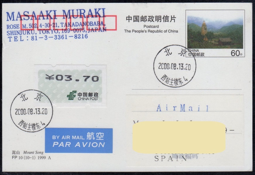 von 0.10 CN¥ zu erhalten. Bei der Versandstelle waren die Marken nicht