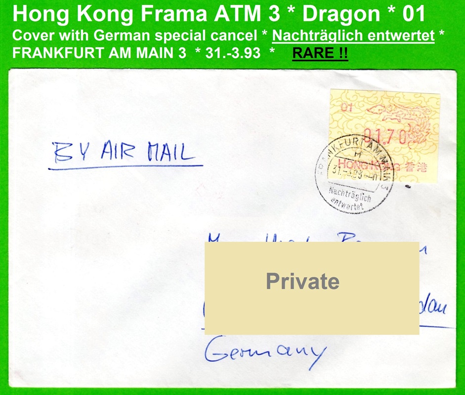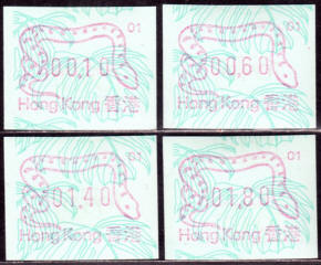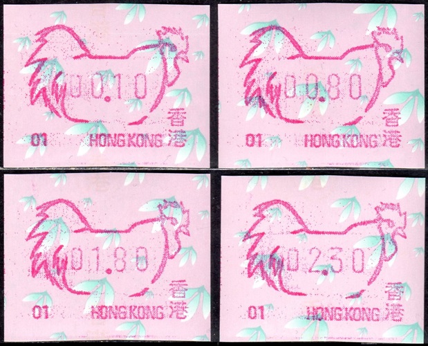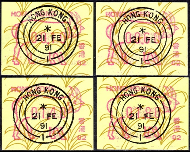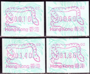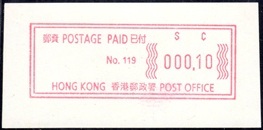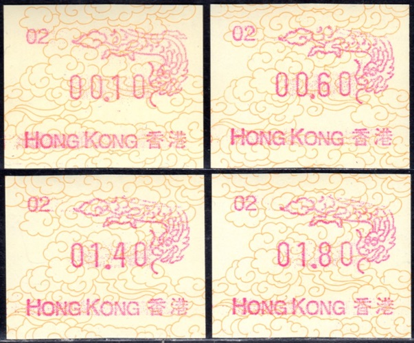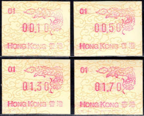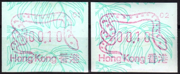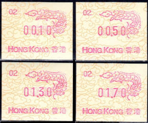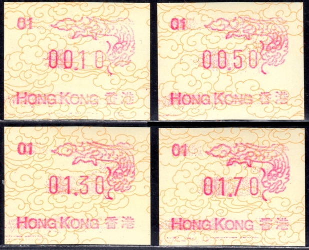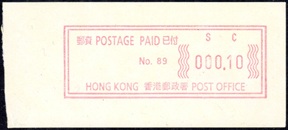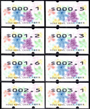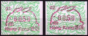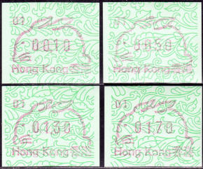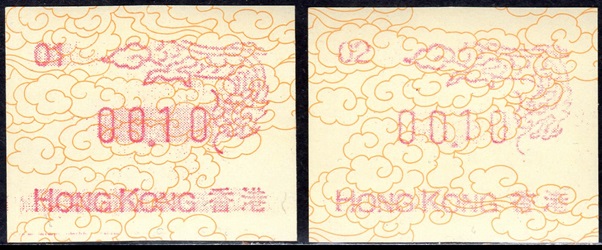 Diese Marken sind unzweifelhaft Automatenmarken (ATM) und keine Schalterfreistemel (SFS), denn sie wurden in Wertzeichenautomaten hergestellt, haben kein aufgedrucktes Datum und waren in der Funktion und Handhabung den herkömmlichen Briefmarken gleichgestellt. Die Automatenmarken waren der gesamten Öffentlichkeit an den Postschaltern zugänglich, konnten anonym gekauft werden und tragen deshalb keinen Hinweis auf den Käufer. Das der Postkunde nur die Wertstufe 0,10 HK$ am Schalter oder über die Versandstelle kaufen konnte ist keine Einschränkung, denn z.B. bei der Ausgabe von Pitcairn (Michel 1) war es auch nur möglich einen Wert zu 0.70 $ am Automaten zu kaufen oder über die Versandstelle zu beziehen, andere Wertstufen waren hier ebenfalls nicht möglich. Warum der Michel Katalog diese Automatenmarken nicht katalogisiert bzw. welche Ausschlußkriterien die Redaktion für eine Katalogisierung hat, ist nicht bekannt. |