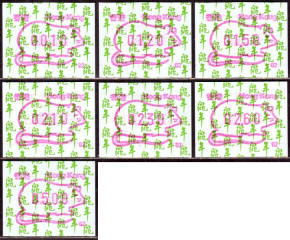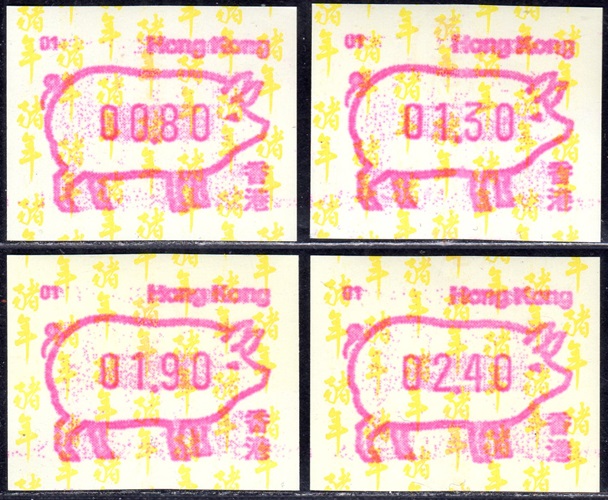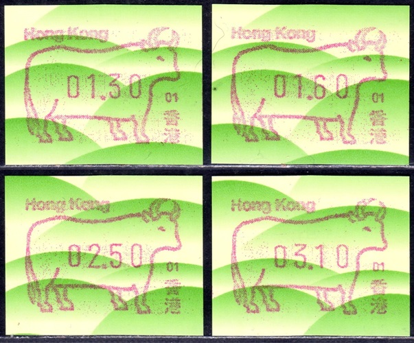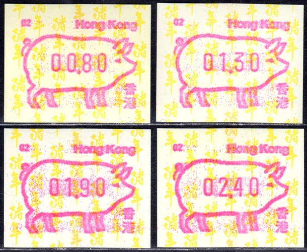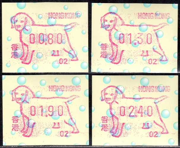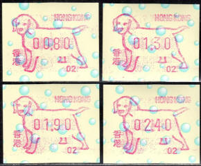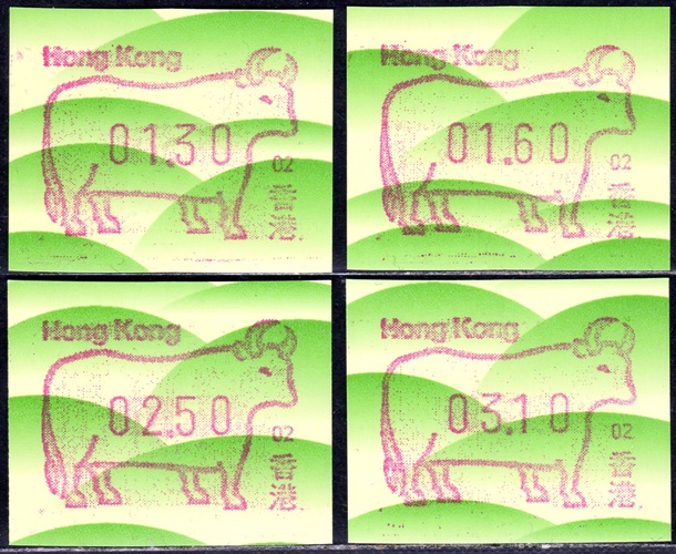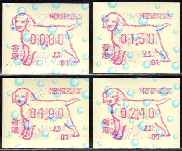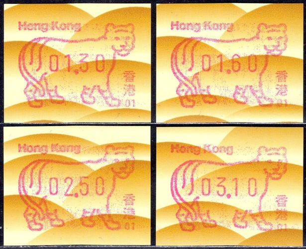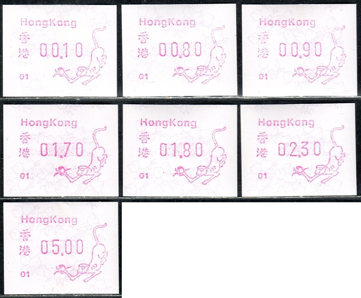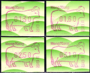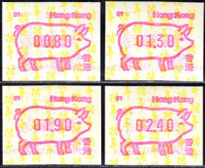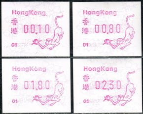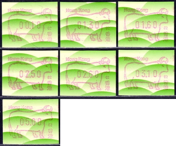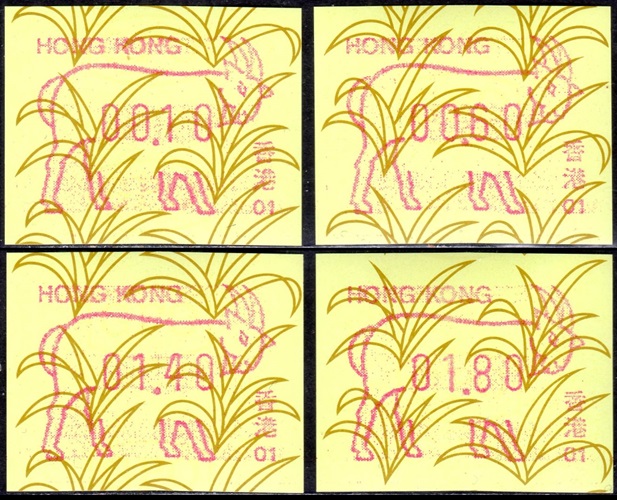 Am 18.08.1987 begann die Post die Herausgabe von ATM mit Motiven des 12-jährigen Zyklus der Tierkreiszeichen des chinesischen Mondkalenders mit dem Markenmotiv zum Jahr des Hasen. Das Vordruckpapier hat einen fluoreszierenden Sicherheitsaufdruck GPO Hong Kong und wurde im Offsetdruck von Leigh-Mardon, Australien hergestellt. Diese Ausgabe, sowie alle folgenden Ausgaben mit den Motiven der verschiedenen Tierkreiszeichen waren aus zwei Frama Ortsautomaten vom Typ FE264 erhältlich. Der eine Standort mit der Automatennummer 01 war bei der Hauptpost und der zweite mit der Automatennummer 02 beim Postamt Tsim Sha Tsui (Kowloon). Alle Ausgaben waren auch bei der Versandstelle erhältlich, amtliche FDC wurden aber nur von der Michel 1 (Karpfen) angeboten. Ab der Ausgabe zum Jahr der Ziege in 1991 wurden die beiden Automaten vom Typ FE264 durch zwei neue Automaten vom Typ FE1610 ersetzt. Diese Automaten hatten eine 12er-Tastatur mit der alle Wertstufen zwischen 0.10 bis 5.00 ($) in Stufen von 0.10 ($) ausgewählt werden konnten. In der Laufzeit zum Jahr des Ochsen am 1.7.1997 wurde die ehemalige britische Kronkolonie Hongkong in die Volksrepublik China als Sonderverwaltungszone eingegliedert. Für die ATM-Ausgabe hatte dies aber keine Auswirkungen, die beiden Automaten liefen normal weiter und auch die letzte Ausgabe, und somit der Abschluß des 12 jährigen Zyklus der Tierkreiszeichen zum Jahr des Tigers wurde am 11.02.1998 noch herausgegeben. Nach einer kurzen Laufzeit der Tiger Ausgabe endete dann am 28.03.1998 auch die Ära der Frama Automaten in Hongkong. |