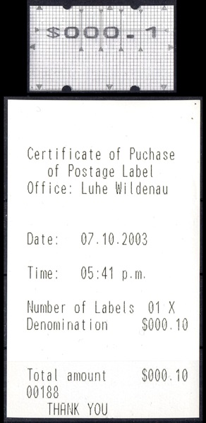 Druckprobe, Specimen - Papier Vordruck Raster mit Gummierung $ 000.1 mit Quittung 07.10.2003 |