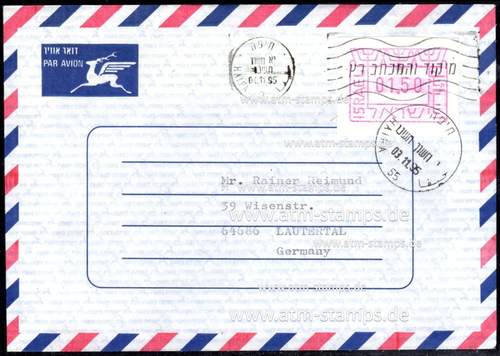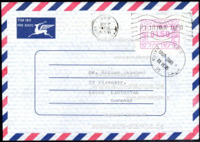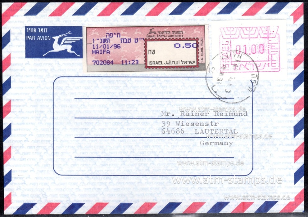 Auslandbrief Luftpost 1.50 NIS nach Deutschland, Mischfrankatur ATM 1.00