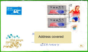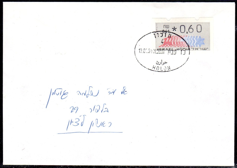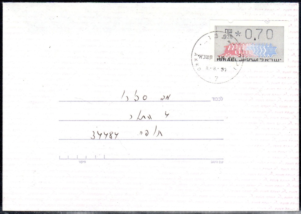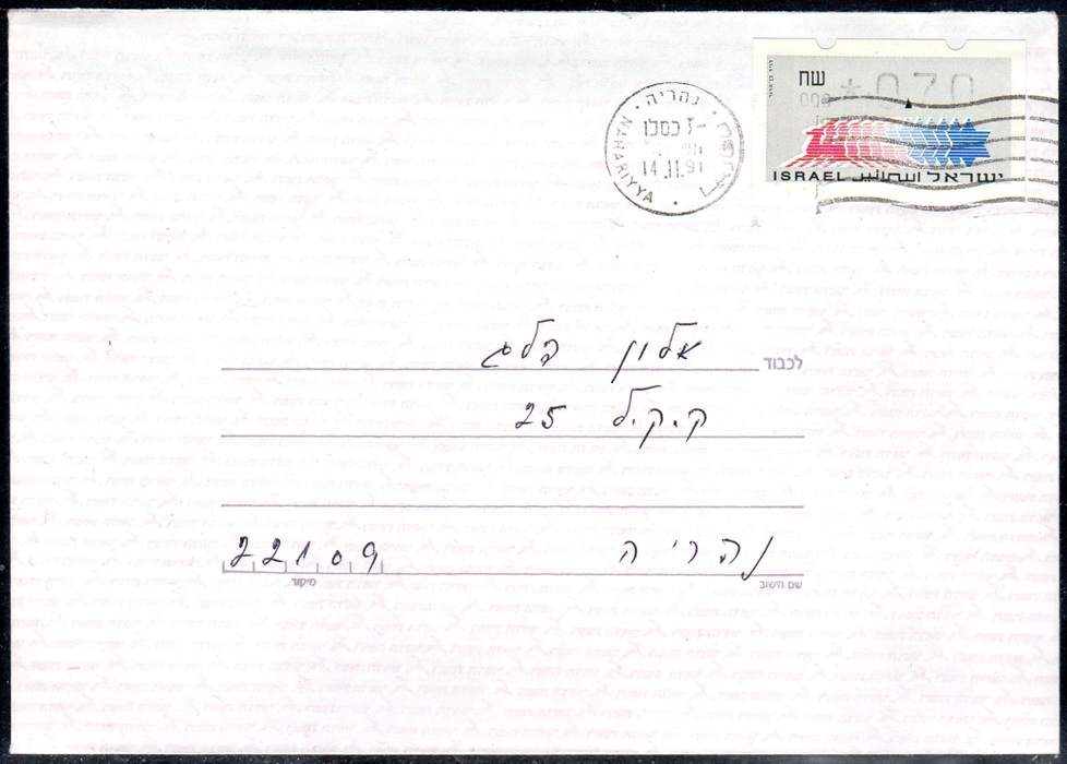 ATM 0,05 und Frama 0,55 auf Inlandbrief 12.12.90 Tel Aviv Yafo