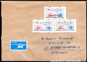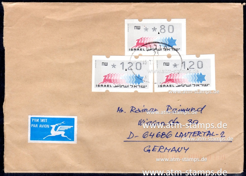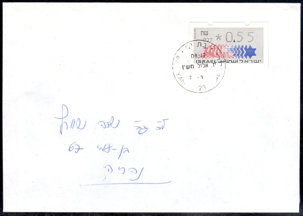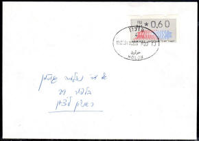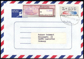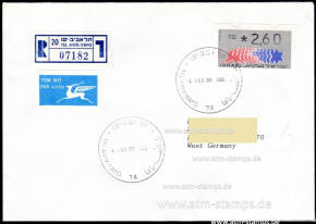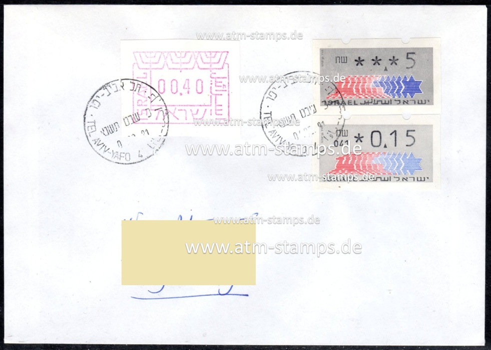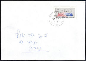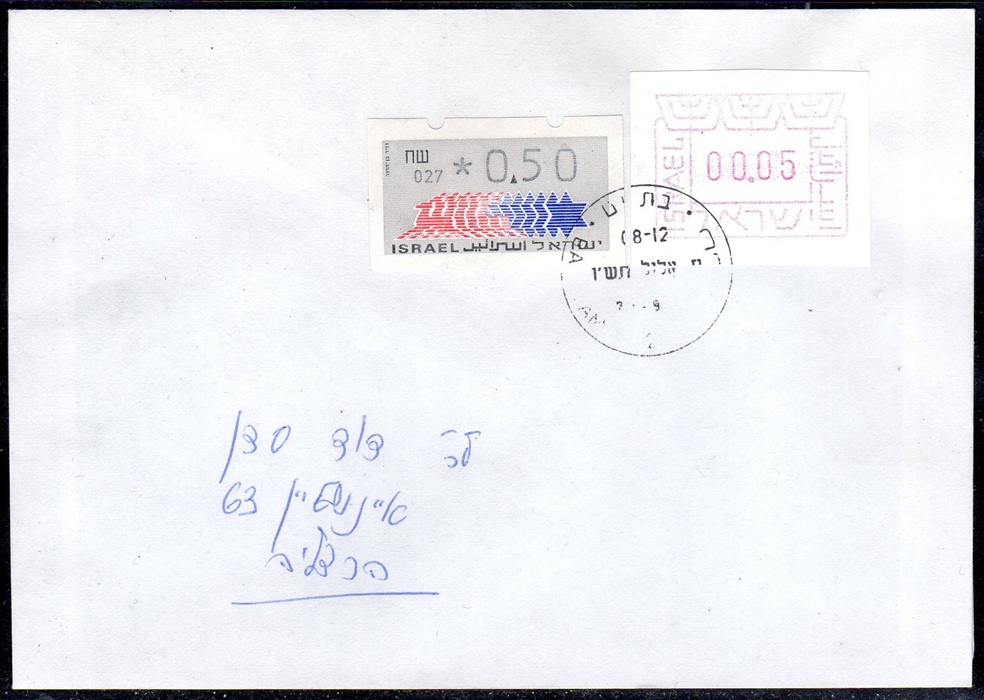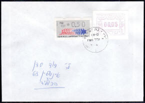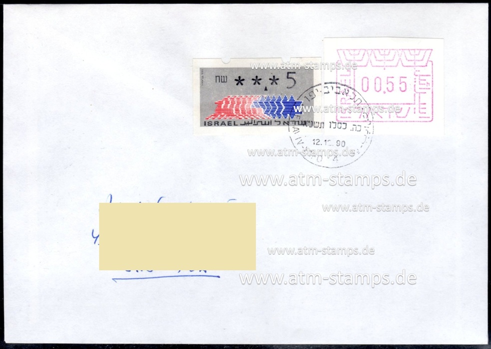 ATM 0,05 und 0,55 auf Inlandbrief 12.12.90 Tel Aviv Yafo