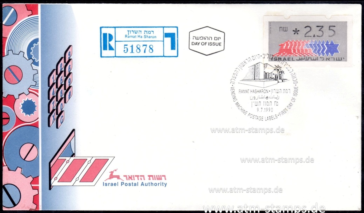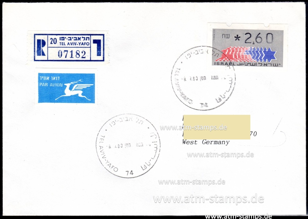 ATM 2,60 auf FDC Einschreiben, Ersttagsstempel 9.7.90 Tel Aviv Yafo