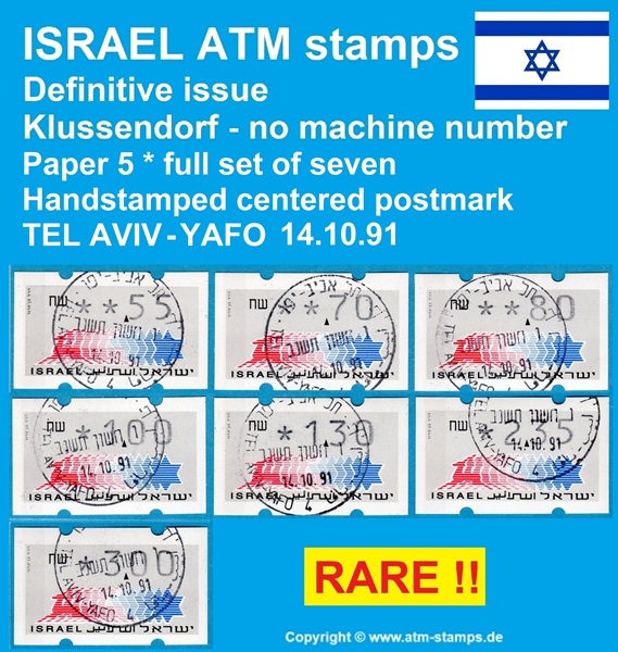 ATM Kleinstwert xx,x5 Vollstempel 06.01.91 Tel Aviv-Yafo |