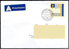 ATM 01,00 auf FDC vom Ort nach Deutschland - Triesenberg