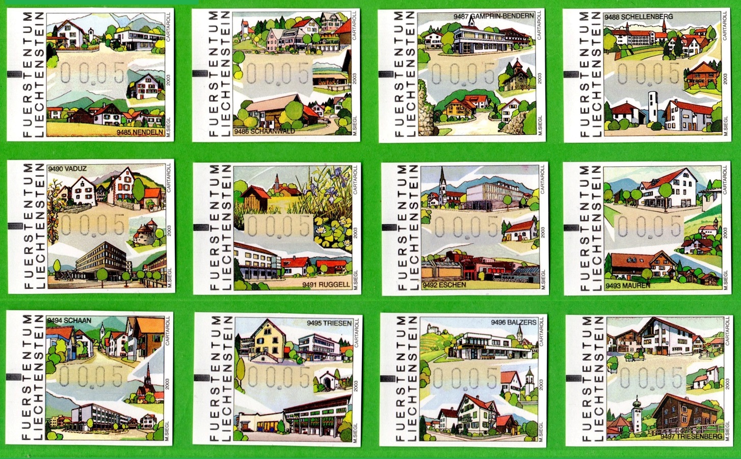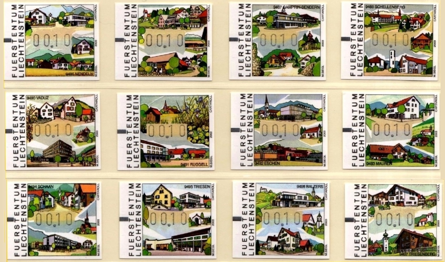 Serie 00.60 Ersttagsgestempelt vom jeweilgen Postamt. |