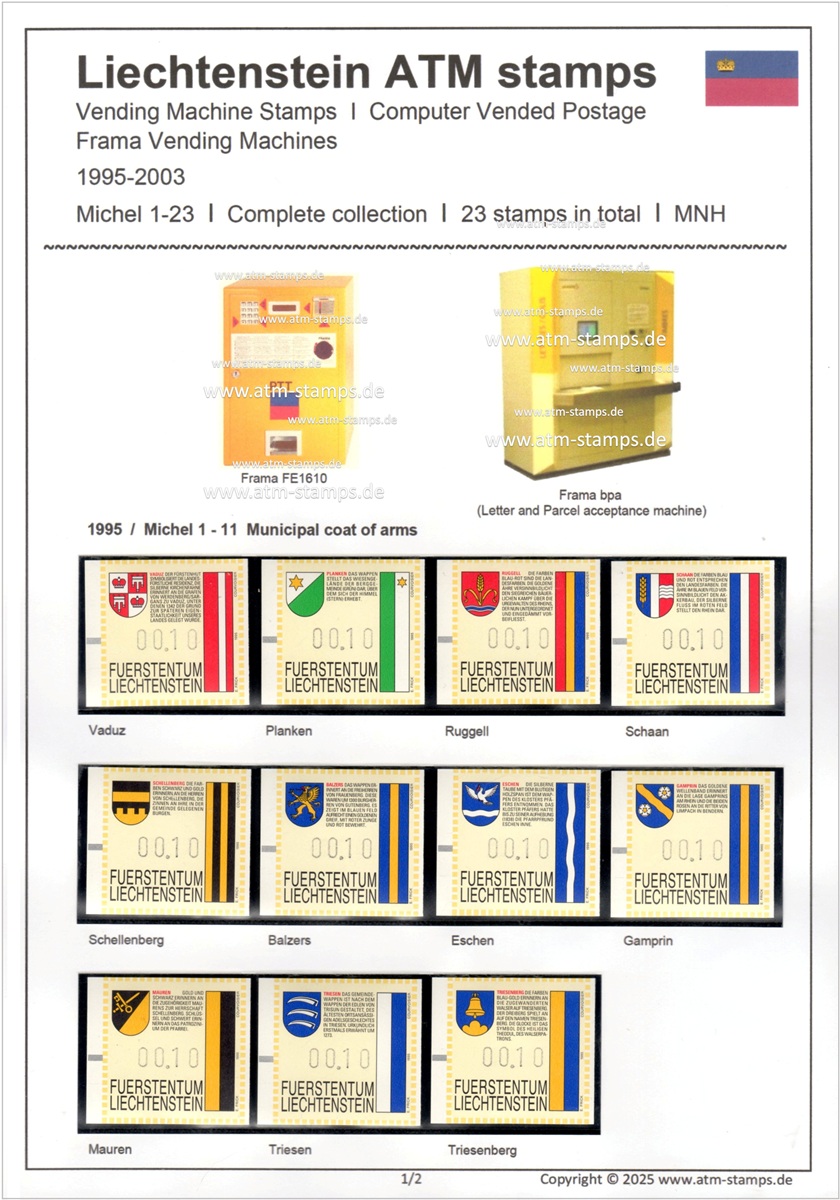 mit Abbildungen der eingesetzten Frama Wertzeichenautomaten. Die Marken