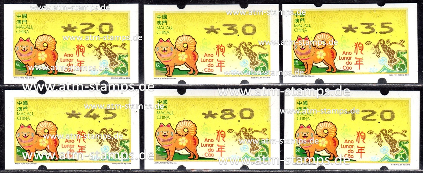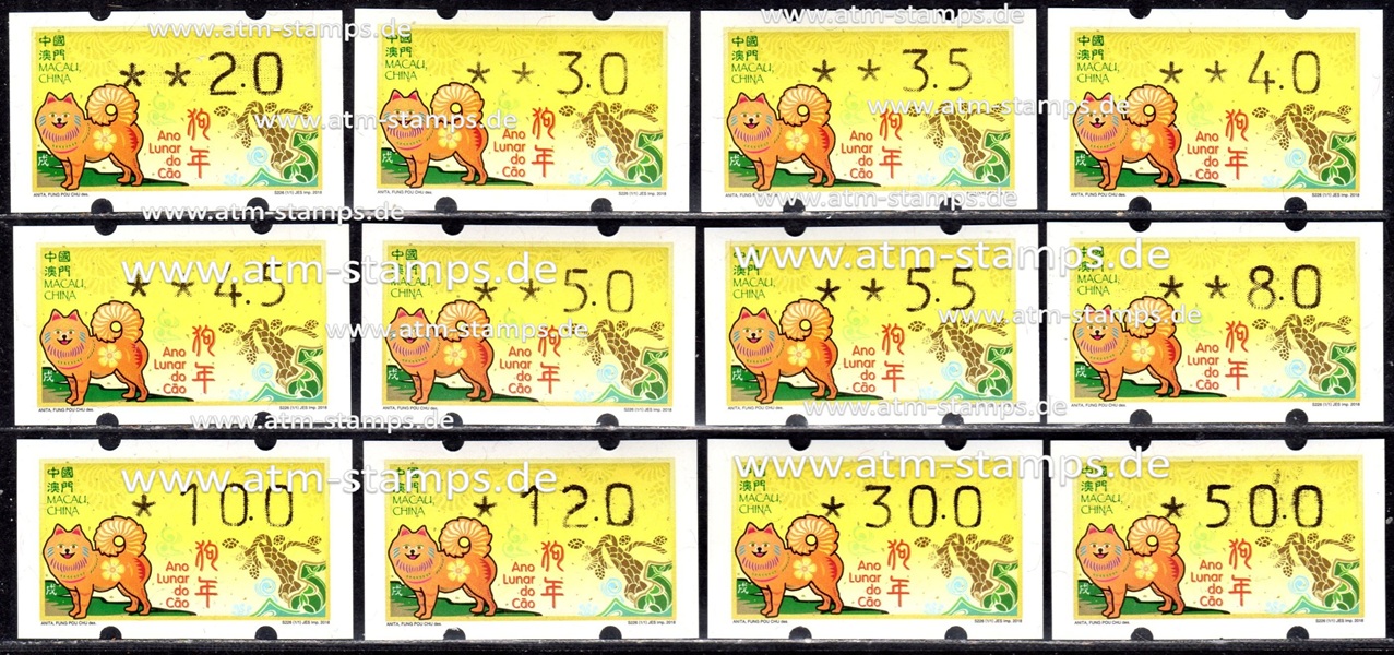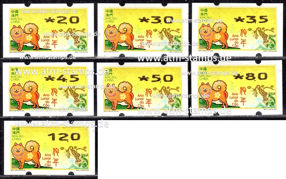 Zum Jahr des Hundes - aus dem 12 jährigen Zyklus der Chinesischen Tierkreiszeichen - ersdchien diese ATM am 31.01.2018. Die Vordrucke wurden wieder in den Klüssendorf und Nagler Automaten verwendet. Die Versandstelle hatte von Michel 12.1 den Satz 2.0, 3.0, 3.5, 4.5 P. in postfrisch und auf amtlichen FDC (Auflage 5000) angeboten. Die Vordrucke wurden von Royal Joh. Enschedé, Niederlande im Offset-Lithografie Druckverfahren (Auflage 1.000.000 Vordrucke) hergestellt. Jede 5.Marke mit rückseitiger Zählnummer. Die Macau Post meldete am 09.02.2018, dass die Ausgabe bald ausverkauft sein wird! |