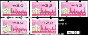 Die neue ATM Dauerausgabe Grande Baía Guangdong-Hong Kong-Macau erschien am 26.09.2019 und löste die Ausgabe Alte Straßen und Gassen ab. Bei den Klüssendorf K631 und Nagler N104 und N714 Automaten waren die 2.0 P. Wertstufen nicht mehr im Tastensatz enthalten und bei den NewVision Elite und Prestige Geräten hatte der Tastensatz jetzt 15 Wertstufen 2.5 - 50.0 P. In allen Automaten wurden Vordrucke mit dem Druckvermerk Imp. 2019 unten rechts am Markenrand verwendet. In 2020 löste dann eine Bildgleiche Nachauflage mit dem Druckvermerk REIMP 2020 die Erstausgabe ab, wurde aber nur noch in den aktuellen NewVision Automaten verwendet - siehe Michel 15.4. Die Klüssendorf und Nagler Automaten sind nicht mehr im Einsatz, allerdings hält die Post noch zwei Klüssendorf K631 und fünf Nagler N104 Geräte in der Hauptpost und im Postmuseum Betriebsbereit, die aber nur bei Neuausgaben kurzzeitig in Betrieb gesetzt werden. Somit gibt es bis auf weiteres alle Neuausgaben auch mit den drei verschiedenen Druckbildern der Werteindrucke. Die Versandstelle hatte von Michel 15.3 den Satz 2.5, 4.0, 4.5, 6.0 P. in postfrisch und auf amtlichen FDC (Auflage 4500) angeboten. Beide Vordrucke Imp. 2019 und REIMP 2020 wurden von Cartor Security Printing, Frankreich im Offset-Lithografie Druckverfahren hergestellt. Jede 5.Marke mit rückseitiger Zählnummer. |