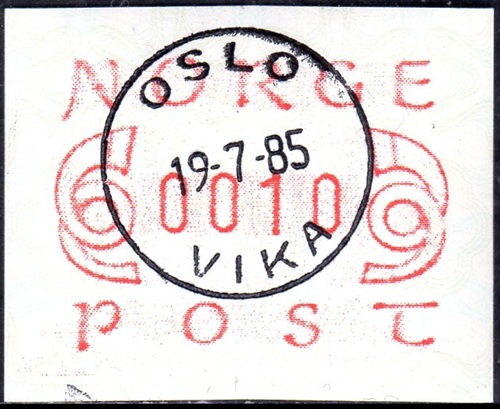 Weltweit als drittes Land nach Frankreich (1969, Ausgabe Montgeron) und der Schweiz (1976, Versuchsausgabe A1-A4) hat Posten Norge am 02.12.1978 die ersten Automatenmarken herausgegeben. An diesem Tag startete die Post einen Versuchsbetrieb mit 5 Münzwertzeichendrucker der schweizer Firma Frama vom Typ FE264. Die Druckklischees in den Automaten waren mit den Nummern 1-5 durchnummeriert und die Standorte waren in Oslo 1 Sentrum (1), Oslo Lufthavn (2), Bergen (3), Trondheim (4) und TromsØ (5). Die Geräte hatten ein Wertespektrum von 5 bis 99,85 (?) Øre in Stufen von 5 Øre und waren mit einem Tastensatz mit 3 Wertstufen 100, 125, 130 (Øre) programmiert. Nur beim Automaten Oslo Lufthavn (2) wurde Anfang 1979 der Tastensatz in die Wertstufen 100, 125 und neu 180 (Øre) geändert. Die Automaten akzeptierten Münzen im Nennwert von 5, 10, 25 und 50 Øre sowie 1 und 5 Kronen und zu viel bezahlter Betrag wurde von den Geräten als eine ATM anstatt als Münzen erstattet. Die eingesetzten Papierrollen waren weiß ohne Vordruck und unter UV-Licht leuchten die ATM hell auf, bis ab Mitte 1980 auch eine neue Papiervariante eingesetzt wurde bei der die ATM unter UV-Licht nicht mehr hell (y) sondern dunkel (x) erscheinen. Nur bei der Papiersorte hell (y) waren sogenannte Endstreifen auf den Rollen angebracht, die das nahende Rollenende signalisierten sollten. Sie erscheinen auf den ATM als senkrechte Streifen in der Farbe lilapurpur. Die Endstreifen begannen etwa 1,5 Meter vor dem Rollenende und sie erstreckten sich dann über eine Länge von etwa 50 bis 60 cm, bevor sie endeten. Danach blieb noch etwa ein Meter weißes Papier ohne Streifen übrig, bevor die Rolle ihr Ende erreichte.