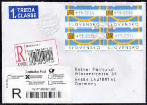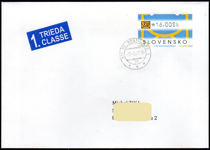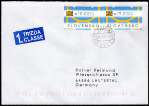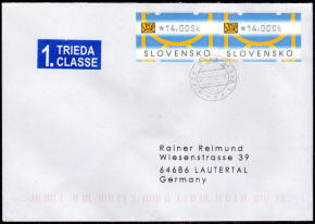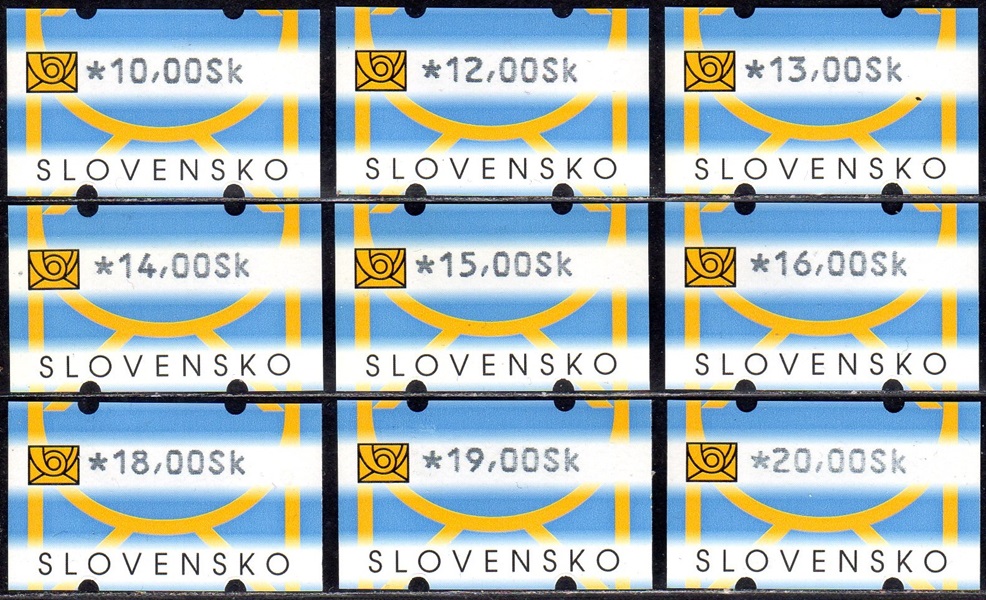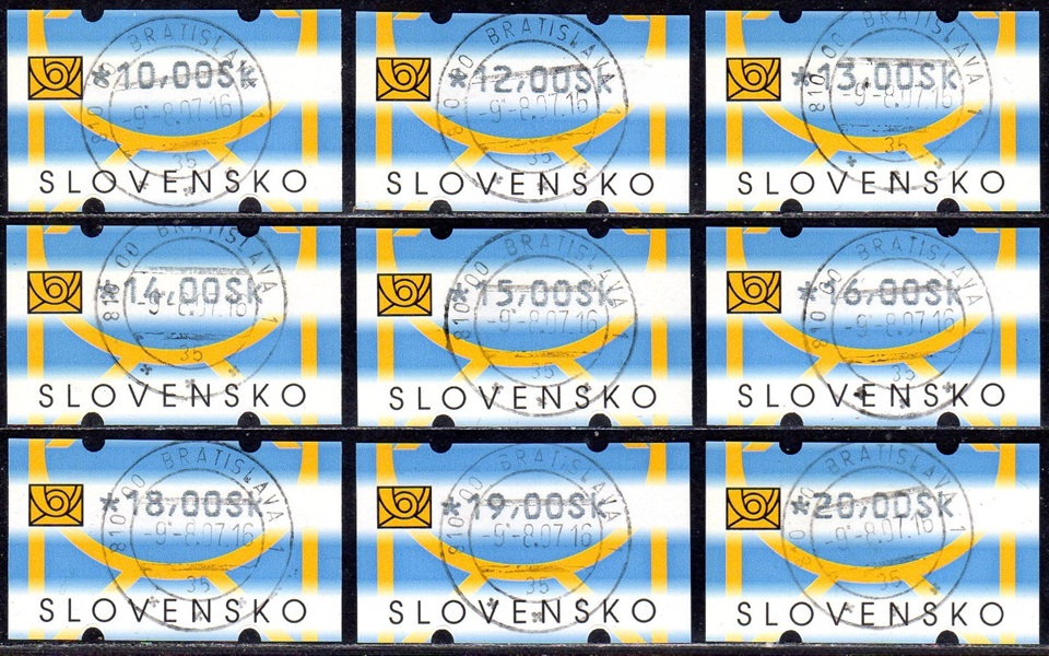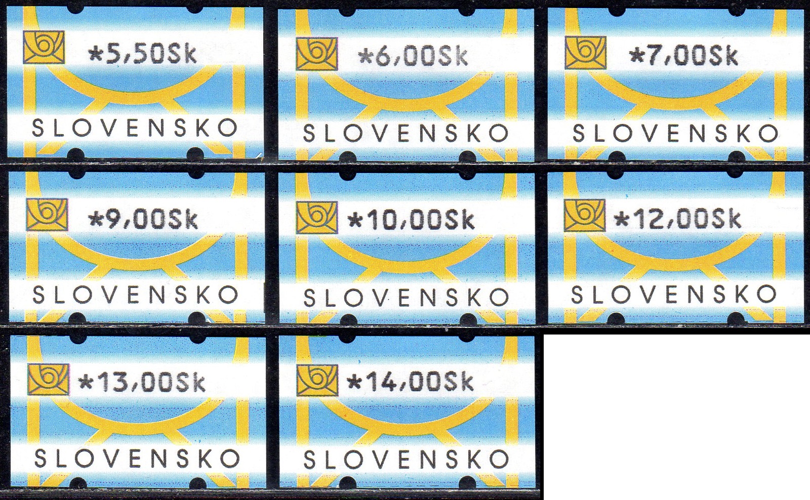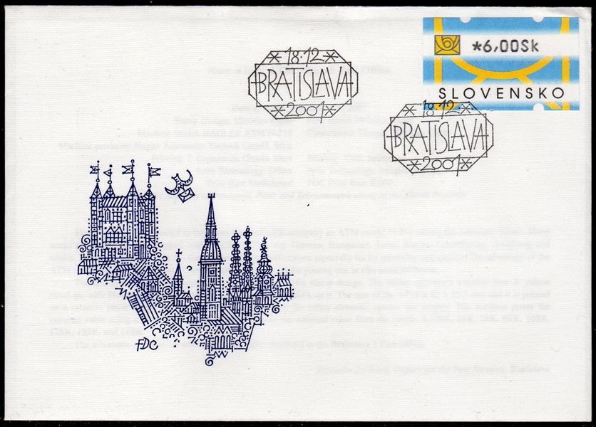 Slovenská pošta nahm am 18.12.2001 im Hauptpostamt Bratislava einen Münzwertzeichendrucker Typ N714 vom deutschen Hersteller Nagler in Betrieb. Es sollte bei diesem einen Automaten bleiben, denn weitere Geräte wurden nicht installiert. Das Gerät hatte acht programmierte Tastenwerte 5,50, 6,00, 7,00, 9,00, 10,00, 12,00, 13,00 und 14,00 SK andere Wertstufen waren nicht möglich. Bei der Versandstelle waren die Marken erhältlich. Ein amtlicher FDC (Auflage 6000) wurde angeboten. Die Vordrucke wurden in einer Auflage von
