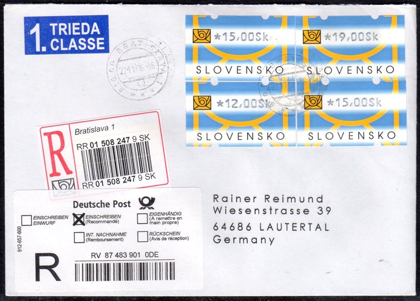 Während der Laufzeit des Automaten gab es verschiedene Portoänderungen, so wurde am 1.1.2002 eine komplett neue Tarifstruktur eingeführt. Sendungen mussten jetzt entweder als 1. Klasse (Prio) oder als 2. Klasse frankiert werden. Weitere Portoanpassungen gab es in den Jahren 2003 bis 2006, was zur folge hatte, dass die programmierten Tastenwerte des Automaten auch angepasst werden mussten. Das exakte Betriebsende des Automaten ist nicht bekannt, aber spätestens am 31.12.2008 wurde das Gerät außer Dienst gestellt, denn am 1. Januar 2009 führte die Slowakei den Euro als neue Landeswährung ein. Das Gerät wurde nicht auf Euro-Münzen umgerüstet. |