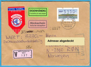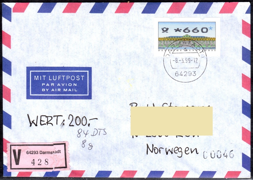Ausland Luftpostbrief EF 110Pf. nach Norwegen mit Ersttag-Tagesstempel