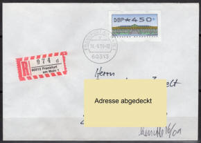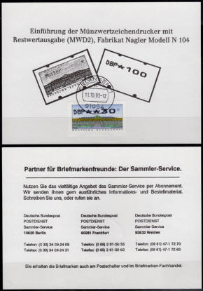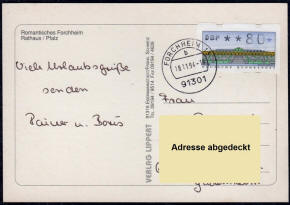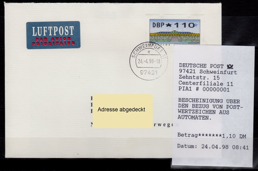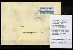 Sonderkarte mit ATM 20Pf. Ersttag-Tagesstempel 24.4.98 vom Standort