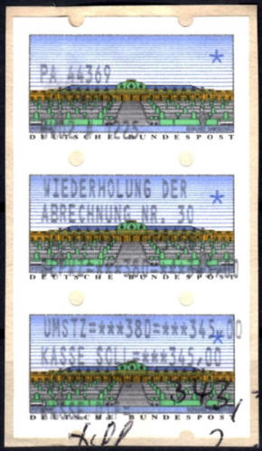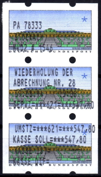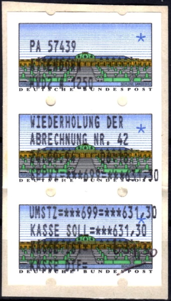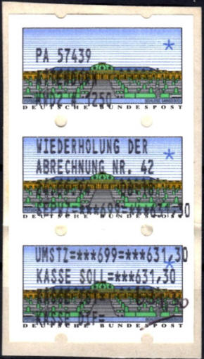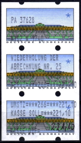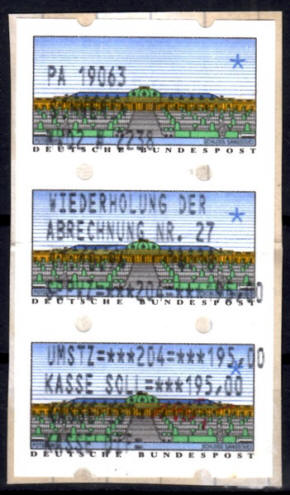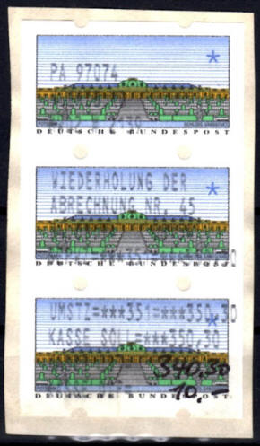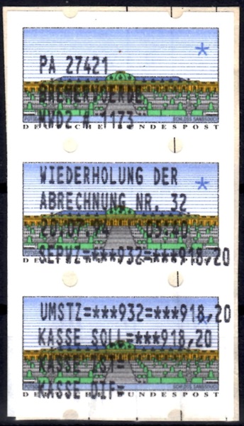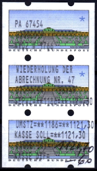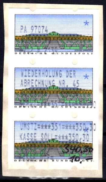 3er-Streifen - Wiederholung der Abrechnung: postalisch verwendet, auf