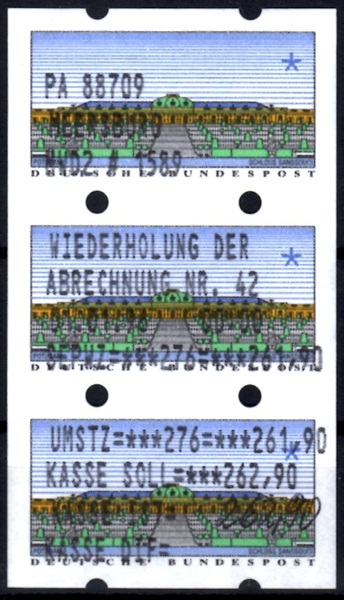 3er-Streifen - Wiederholung der Abrechnung: postalisch verwendet, mit