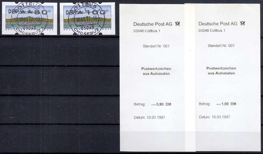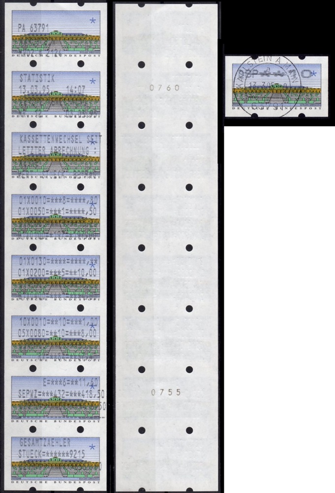 Zählnummern 0755 und 0760. Außerdem ein 10Pf. ATM mit Vollstempel