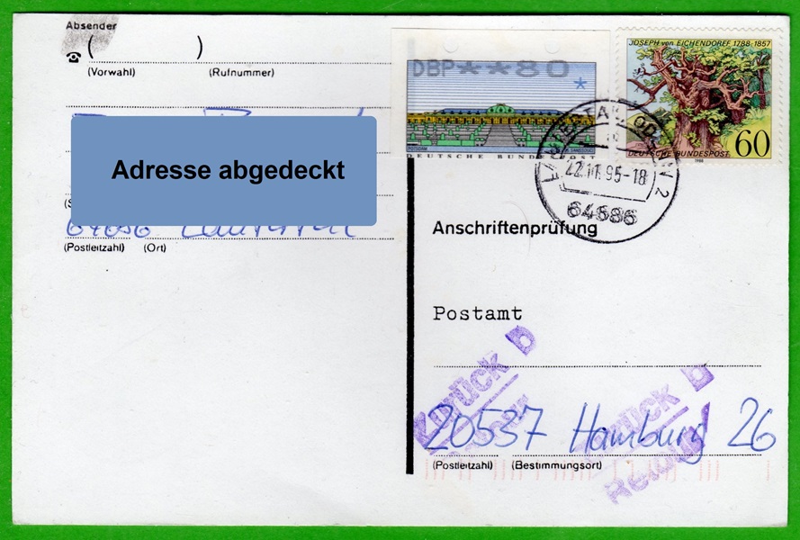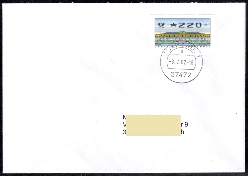 Bochum 6 - rote Postkodierung und Automaten-Quittung. |