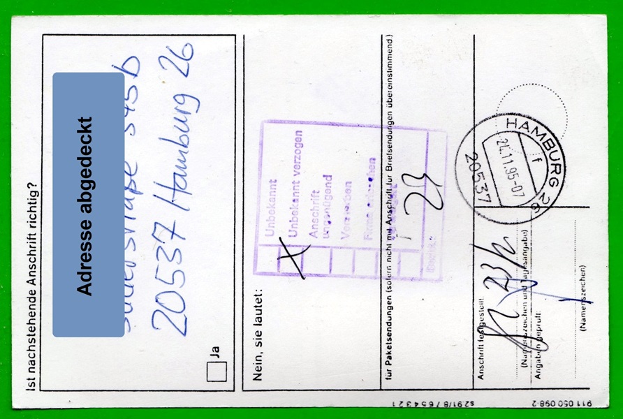 handschriftlicher Vermerk, original Gummi mit Zählnummer 1995 |