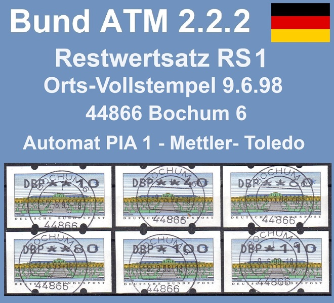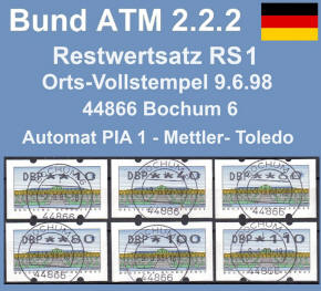 Restwertsatz RS1 Vollstempel 9.6.98 vom Standort Bochum 6 |