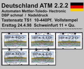 Tastensatz TS1 Ersttag Vollstempel 24.4.98 vom Standort Schweinfurt 11