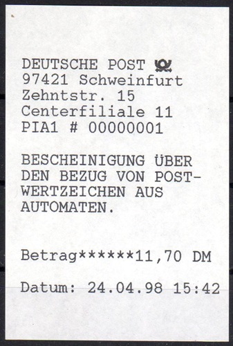 24.4.98 vom Standort Schweinfurt 11 - echtgelaufen mit roter