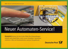 Werbekarte mit ATM 0,10 Sonderstempel 21.2.03 Bonn Zentrale mit