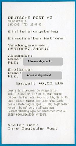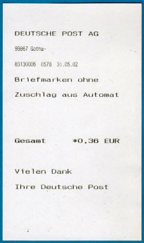 Dauermarke Rundstempel 31.5.02 vom Standort Gotha mit Quittung für die