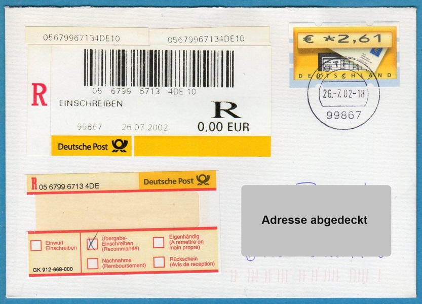 Standardbrief Einschreiben National EF 2,61 Rundstempel 26.7.02 vom