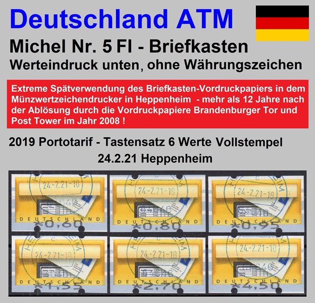 Tastensatz 6 Werte 0,60 - 4,50 Vollstempel 24.2.21 vom Standort