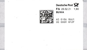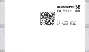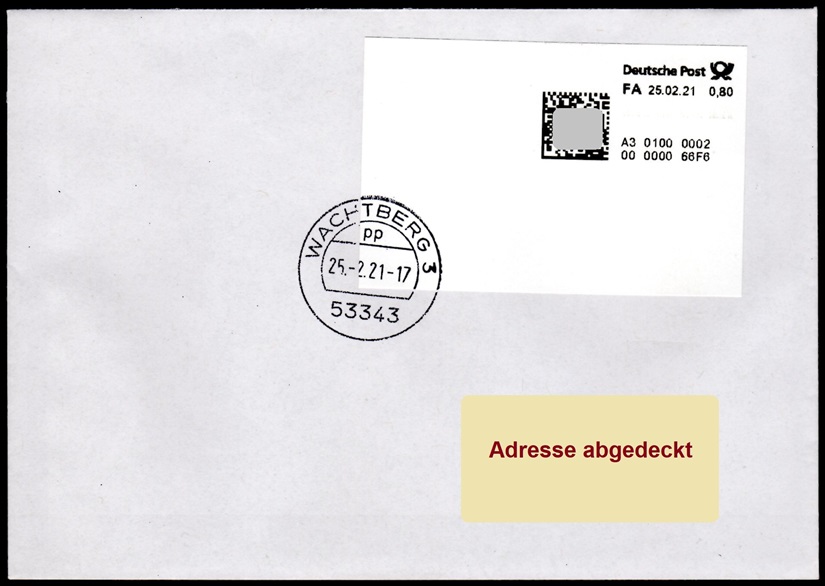 Standardbrief 0,80 mit Rundstempel (schwarze Stempelfarbe) 25.2.21