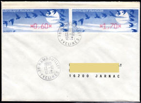 Aufdruckfarbe rot: 2,10 auf Inlandsbrief - Rambouillet 13.10.1990 |