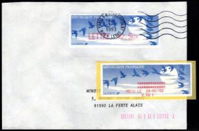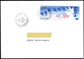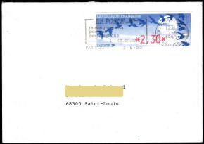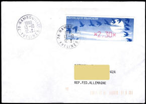 Aufdruckfarbe rot: 2,30 auf Auslandsbrief nach Deuschland - Rambouillet 13.10.1990 |